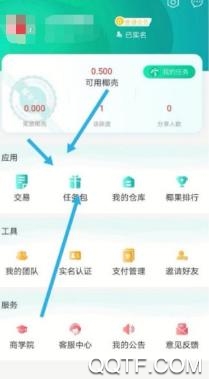 实名完了去领取椰花任务包,30天产15个椰壳;